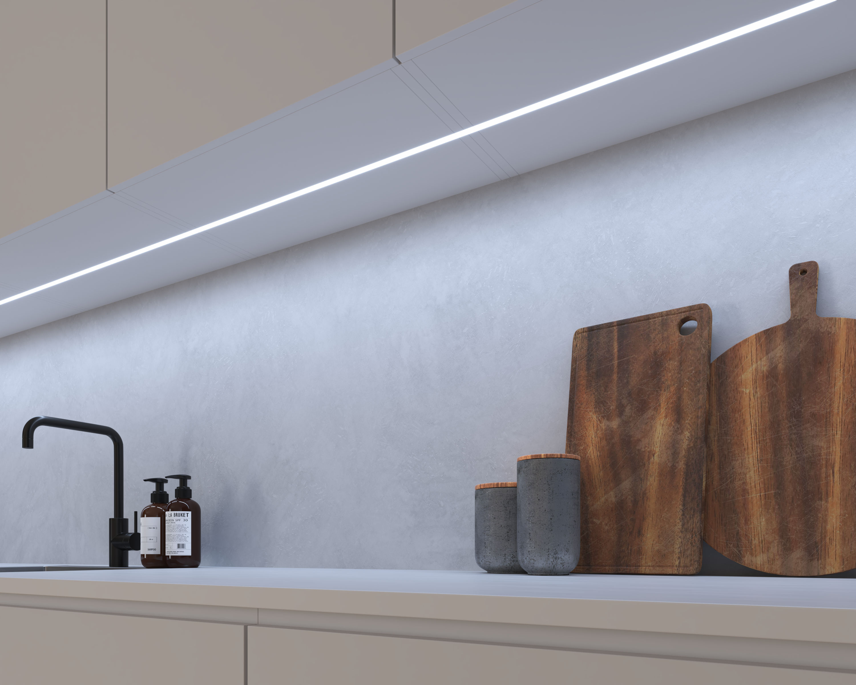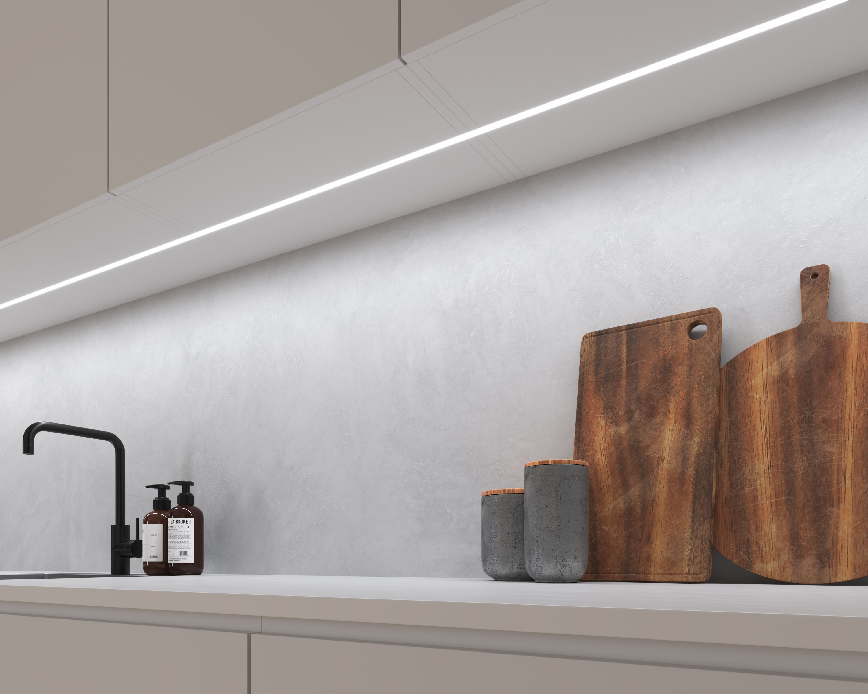 Linjär belysning för installation i fräst skena under skåp eller hyllor. Med MultiWhite® kan du med det modulära LEDconnect-systemet anpassa både längd och färgtemperatur till rummet.