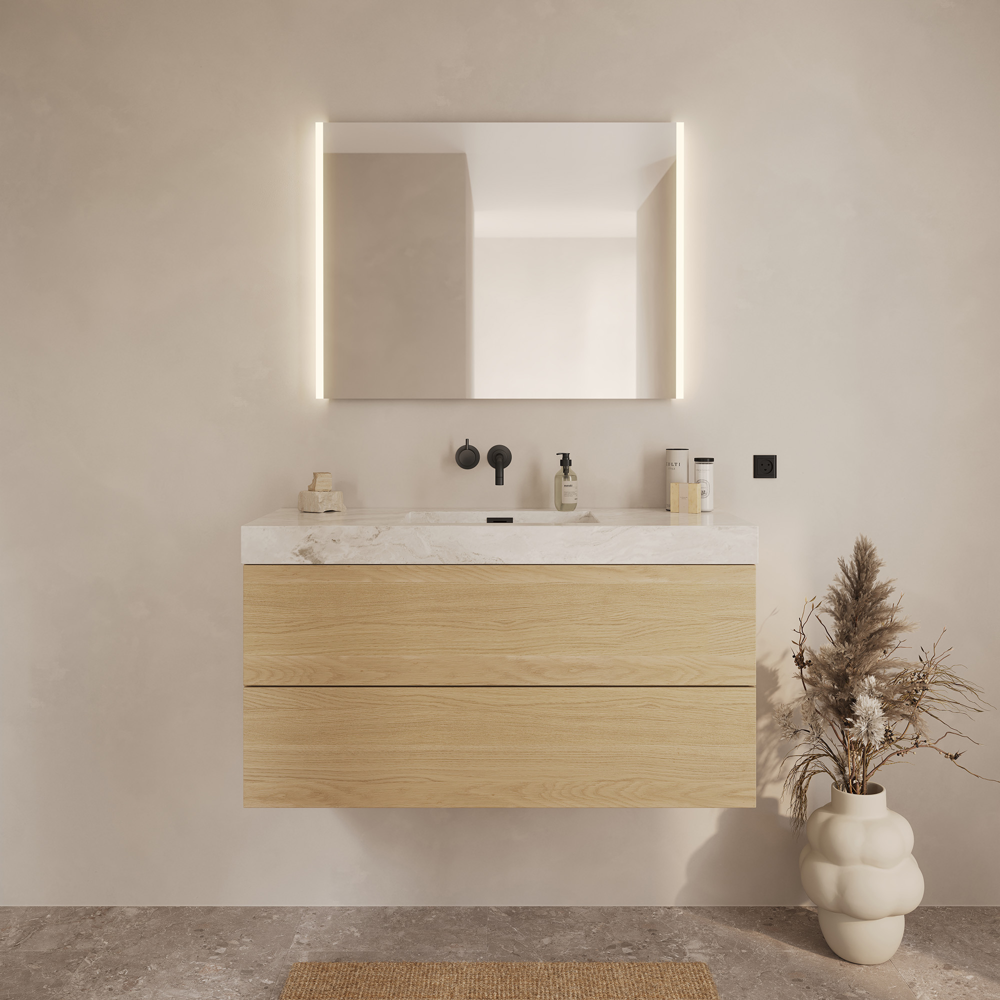 Du får en spegel av hög kvalitet i allt från finish till elektronik, och en ljuskvalitet med ett Ra-värde på över 95. Ra är ett färgåtergivningsindex som talar om hur väl ljuset återger färger och rankas på en skala från 0 till 100, där ett högt värde indikerar god färgåtergivning. Ljusets färgtemperatur är 3000 kelvin, vilket är ett naturligt vitt ljus som påminner om dagsljus.