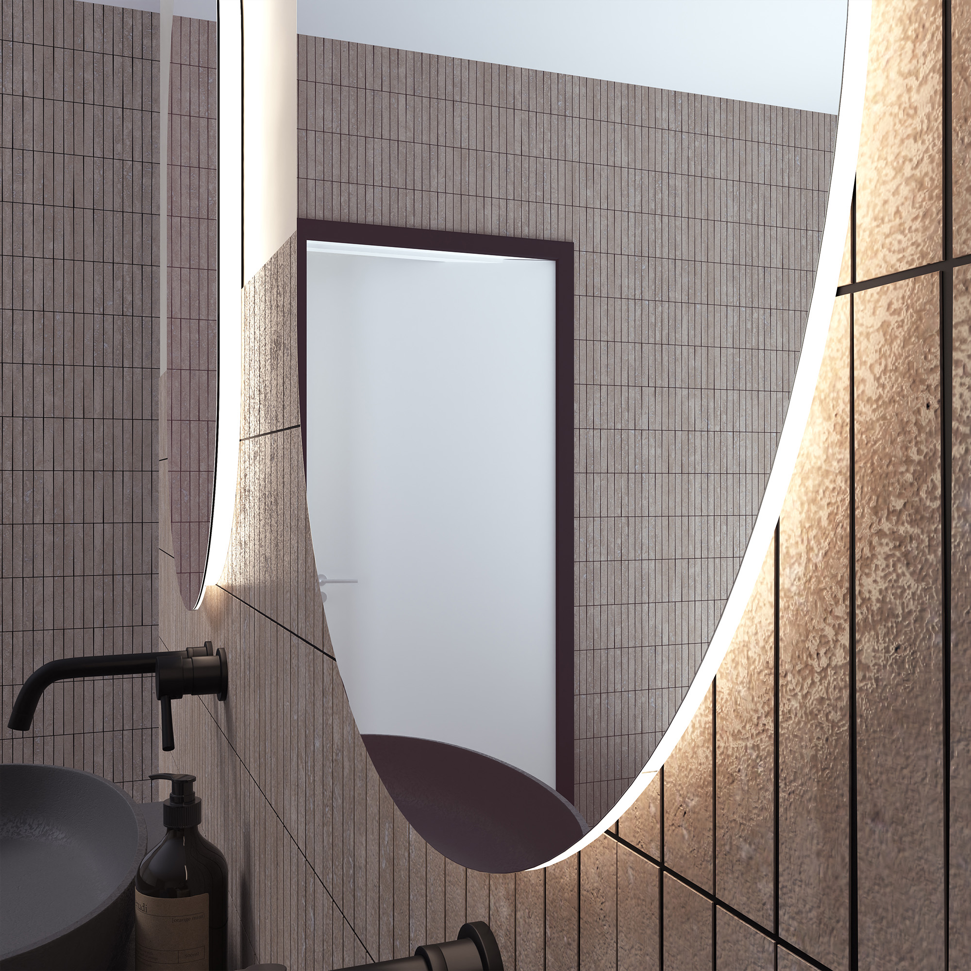 Exklusiva Blokhus, en oval badrumsspegel med belysning, ger en behaglig och elegant ljuseffekt bakom hela spegelytan. Lysdioderna är dolda bakom en diffusor, som omvandlar skarpt ljus till ett mjukt ljus, som sprids vidare till den omgivande interiören. Den ovala formen ger en fin mjuk kontrast till övrig badrumsinredning. Blockhus fungerar också bra i par.