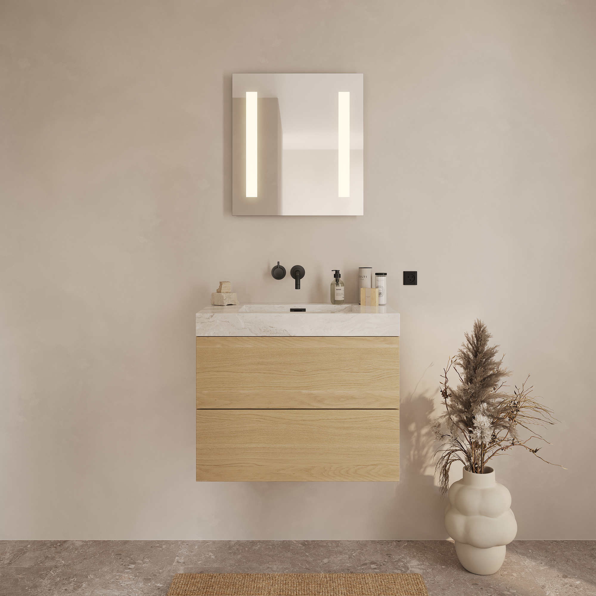 - Ger bra ljus både framför spegeln och till rummet