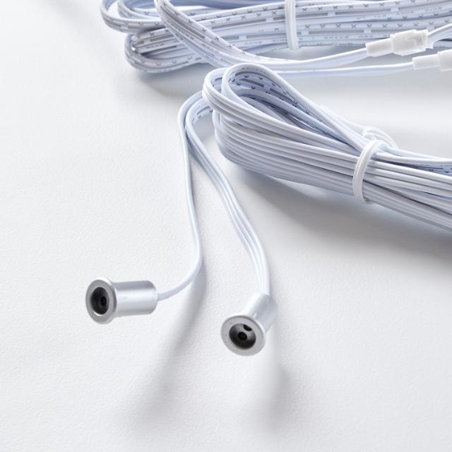 IR-sensorn kan användas med alla Loevschalls 12V LED-lampor. Till exempel inbyggda Sleek- profiler, Pace- spots eller LEDshape . För att ansluta flera lampor till samma sensor finns en fördelningsbox med 6 utgångar.